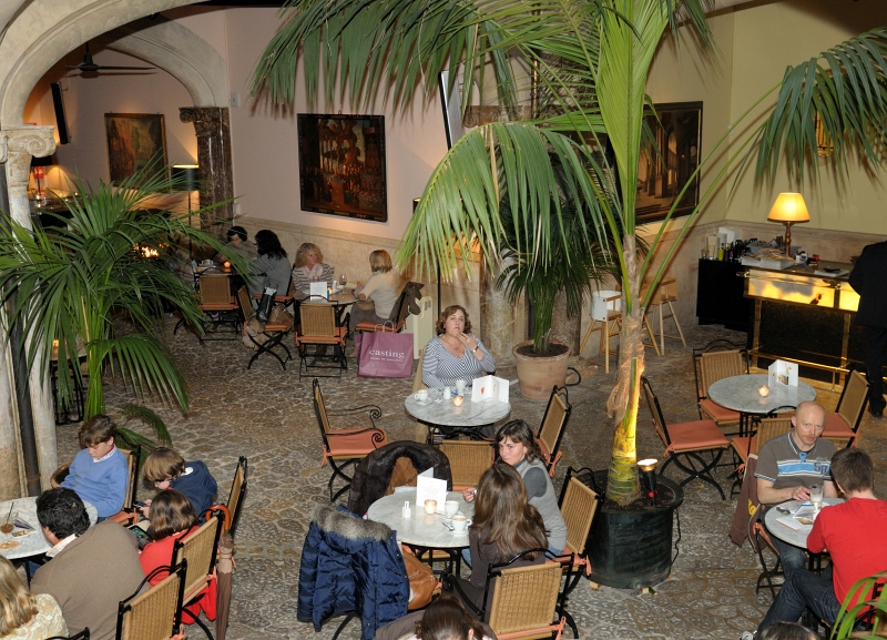 Dieses Mal können wir etwas länger schlafen. Der Flug mit AirBerlin geht erst um 11:35. In Palma angekommen nutzen wir den Tag der Ankunft traditionell für einen Besuch der Inselhauptstadt. Da wir dieses Mal nicht so viel Zeit haben, beschränken wir uns auf einen Spaziergang vom Parc de la Mer, wo wir parken, über den Placa Mayor bis zum Grand Cafe Cappuccino, wo wir uns mit mallorquinischem Brot und Kuchen stärken. Danach shoppen wir noch und kaufen Julchen im Disney Store einen Micky Maus Plüschfigur. Am Abend fahren wir dann zu unserem Hotel nach Cala Millor.