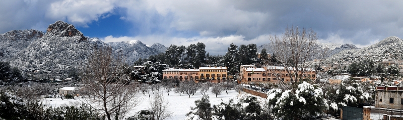 Heute steht leider der Rückflug an WeinenUnseren letzten Tag verbringen wir noch einmal in der Serra de Tramuntana. Die Anfahrt über Bunyola ist schon deswegen einmalig, weil hier heute eine dichte Schneedecke liegt. Mit Schnee bedeckte Zitronen-, Oliven- und Mandelbäume haben wir nicht erwartete. Ein toller Anblick, wenngleich man sagen muss, dass wir es natürlich lieber wärmer hätten. Wir nehmen es, wie es kommt und fahren weiter in das verschneite Valldemossa, aus unserer Sicht einer der schönsten Orte der Insel. Dort bummeln wir durch den Ort,  den wir ja schon gut kenne und kehren ein im ???